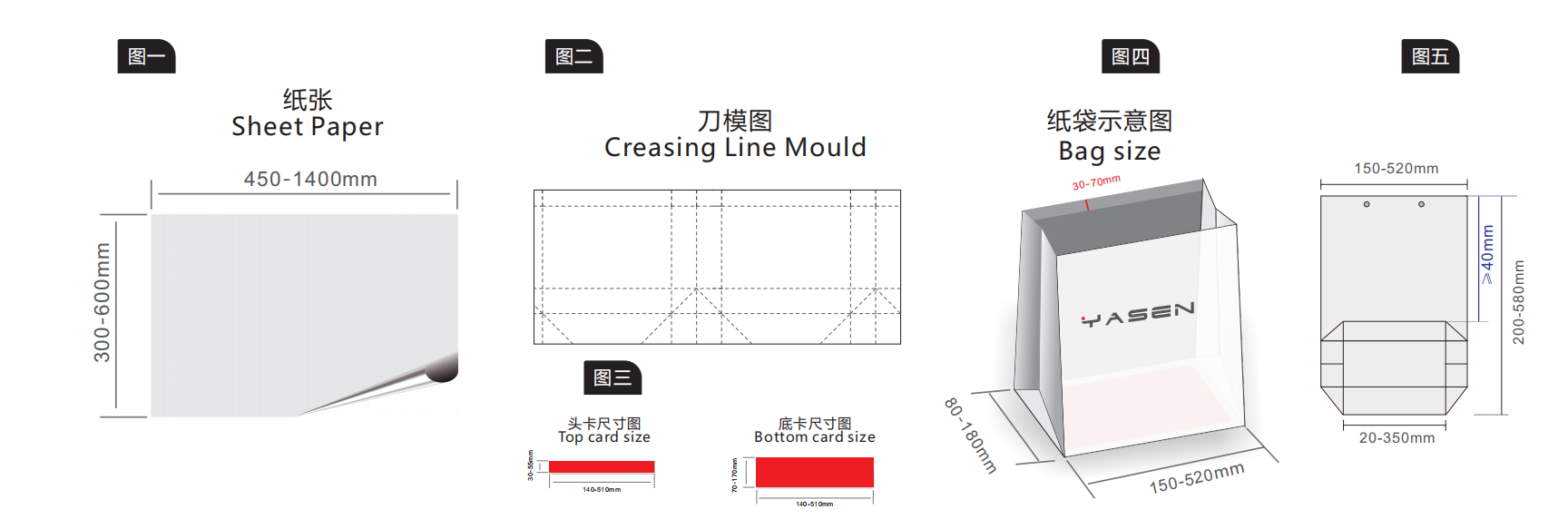 制作紙袋的尺寸和克重的范圍大, 紙袋應用廣泛;