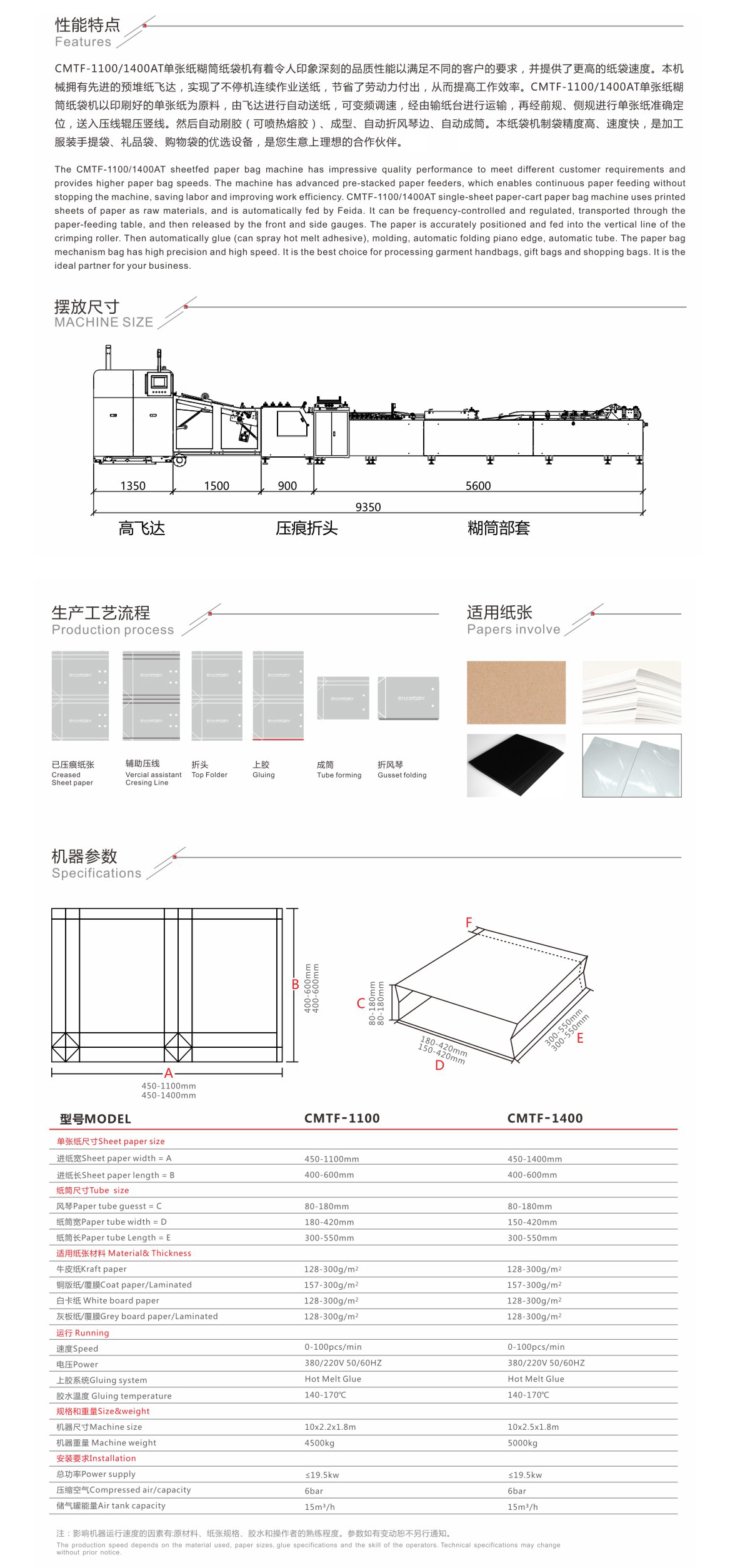 • 紙袋機使用的紙張大小、厚度,范圍廣